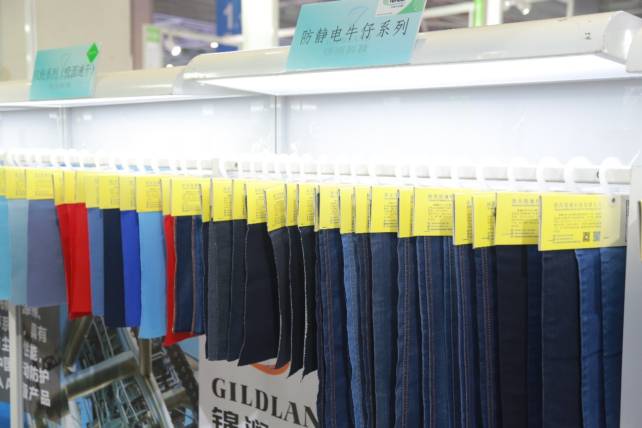 其中展示的多功能防靜電牛仔系列產(chǎn)品中,既有具有柔軟舒適,清爽自然,吸濕、排汗的天絲牛仔面料;也有兼具抗菌、涼爽、易打理特性的冰肌牛仔面料;還有在溫暖舒適基礎(chǔ)上,彰顯粗狂時尚的蓄熱保暖牛仔面料。