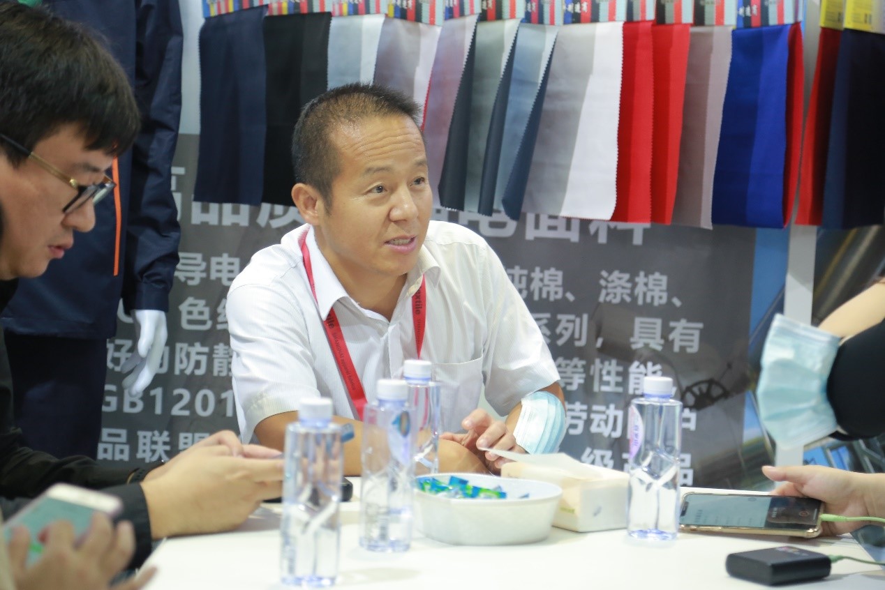 在本次展會展示的專用定制款系列防靜電面料中,不乏抗紫外線、抗菌、彈力、變化組織、抗皺、易打理、阻燃耐高溫等多種防靜電產(chǎn)品。