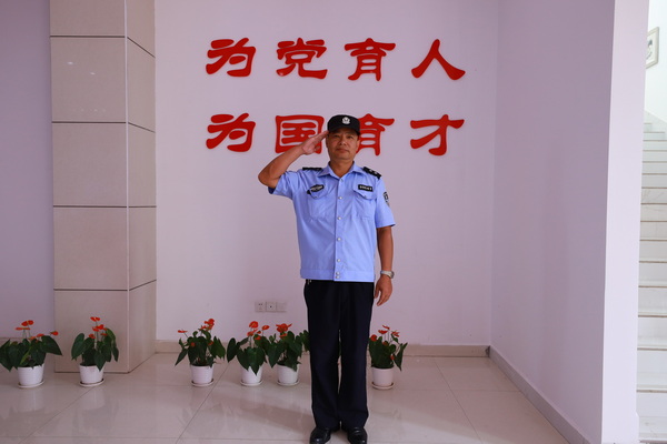 在江服,這一守就是二十年。堅守工作崗位20載,舒火應最驕傲的事就是在學生最需要的時候挺身而出,給予他們幫助。之所以能夠堅守,他坦誠說:“把職業(yè)當成事業(yè)來做,一旦做了,就要全力以赴做好?!焙髞恚⒆右彩艿礁赣H堅守保安工作的影響,毅然報名參軍,至今在部隊服役已九年有余。這何嘗不是一種傳承。舒火應在工作中盡職盡責,有警必出。從處理同學矛盾糾紛到幫同學找回行李財物到送生病同學去醫(yī)院再到半夜給同學送藥等等,無一例外,隨叫隨到。他說,同學們一有事兒就會到110值班室,放個物品傳達句話之類也有,很高興這里能成為同學們最信任最依賴之地。他說學校保安人員肩負著學校安全保衛(wèi)重任,一定要有高度的責任感,嚴格遵守保安職業(yè)道德,全天24小時“不打烊”的守護。如發(fā)現(xiàn)可疑、異常情況或惡劣天氣,要及時巡邏,重點部位要仔細巡查,發(fā)現(xiàn)問題要及時匯報或報警。巡邏時,為保持學校寧靜和正常的教育教學秩序,還應規(guī)勸教育有關(guān)不良行為的學生,杜絕喧嘩、吵鬧、打架和不安全的情況發(fā)生,杜絕浪費、損壞公物、破壞花草樹木的情況發(fā)生。事無巨細,一一執(zhí)行。有了這樣一份“護校安園”的責任擔當,學校安全得到了更有力的保障。