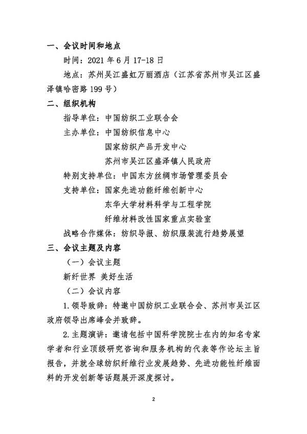 2021國(guó)際先進(jìn)功能性纖維時(shí)尚可持續(xù)高峰論壇將于6月17-18日在蘇州市吳江區(qū)盛澤鎮(zhèn)舉辦2021國(guó)際先進(jìn)功能性纖維時(shí)尚可持續(xù)高峰論壇!