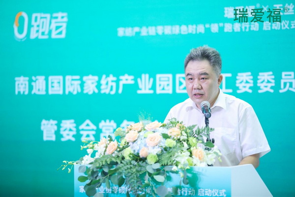黨工委委員、管委會(huì)常務(wù)副主任劉鵬在致辭中表示,“十四五”是實(shí)現(xiàn)2030年前碳達(dá)峰的關(guān)鍵時(shí)期,也是南通家紡產(chǎn)業(yè)加快調(diào)整產(chǎn)業(yè)鏈布局、加速轉(zhuǎn)型升級的重要階段,需要政府、企業(yè)、市場等各單元、各環(huán)節(jié)同心協(xié)力、同頻共振、同向發(fā)力,以全面綠色轉(zhuǎn)型為引領(lǐng),以綠色低碳發(fā)展為關(guān)鍵,共同推動(dòng)家紡產(chǎn)業(yè)向著全產(chǎn)業(yè)鏈零碳綠色時(shí)尚的賽道邁進(jìn)。家紡企業(yè)要積極響應(yīng)國家號召,強(qiáng)化責(zé)任擔(dān)當(dāng);加強(qiáng)綠色低碳科技創(chuàng)新,數(shù)字化賦能轉(zhuǎn)型發(fā)展;加快企業(yè)綠色轉(zhuǎn)型,共筑綠色生態(tài)鏈;構(gòu)建專業(yè)分工、相互協(xié)作的行業(yè)生態(tài)。