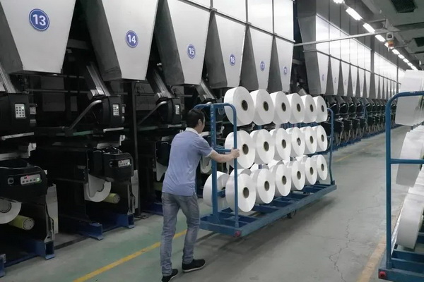 走進(jìn)恒鳴化纖長絲生產(chǎn)車間,“逸泰康”生產(chǎn)線正開足馬力運(yùn)作,隆隆的機(jī)器聲中,工人們正忙而有序地開展生產(chǎn)作業(yè)。“轉(zhuǎn)鈦準(zhǔn)備工作充分合理,轉(zhuǎn)鈦過程波動(dòng)少、節(jié)奏佳,實(shí)現(xiàn)產(chǎn)量品質(zhì)雙提升,產(chǎn)品附加值高于常規(guī)產(chǎn)品,市場前景廣闊?!焙泺Q化纖總經(jīng)理梅兆林介紹說。
