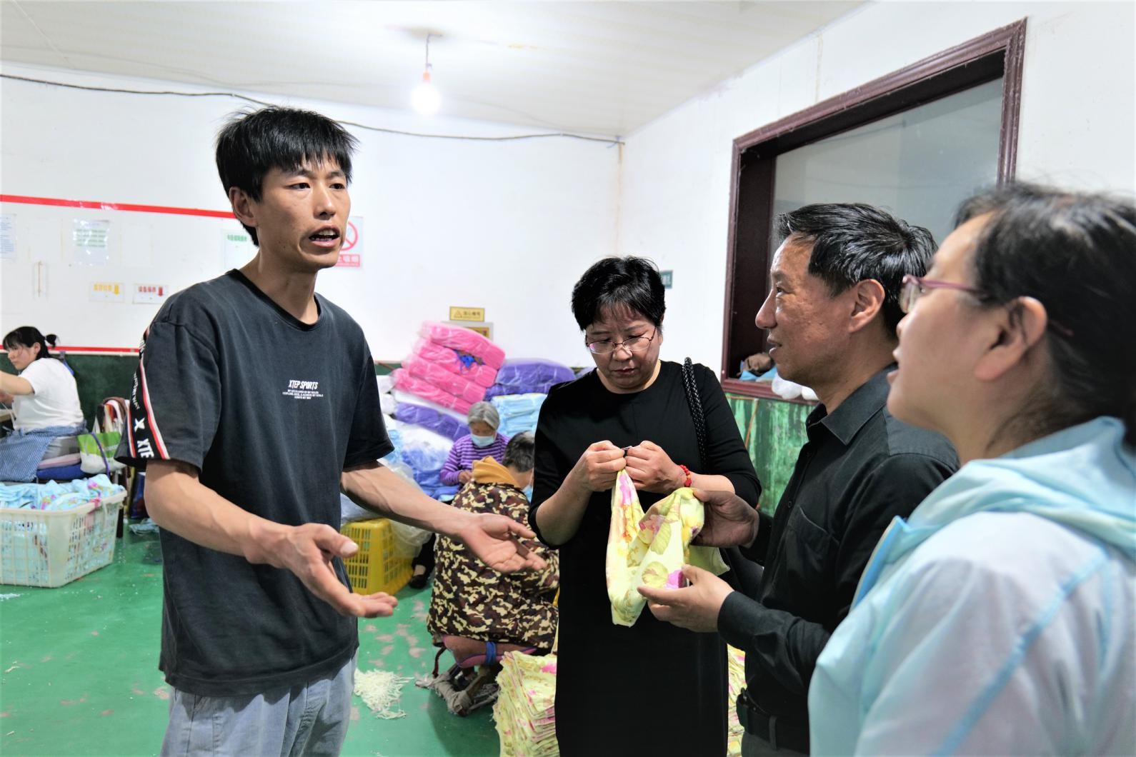 5月19日,石家莊市紡織行業(yè)協會會長邵光毅、秘書長王建惠、財務部主任楊潔等一行,深入無極縣部分紡織企業(yè)調研。石家莊市紡協會領導一行先后走訪了5家不同類型的紡織服裝企業(yè),他們都是中小微企業(yè),各具特色。