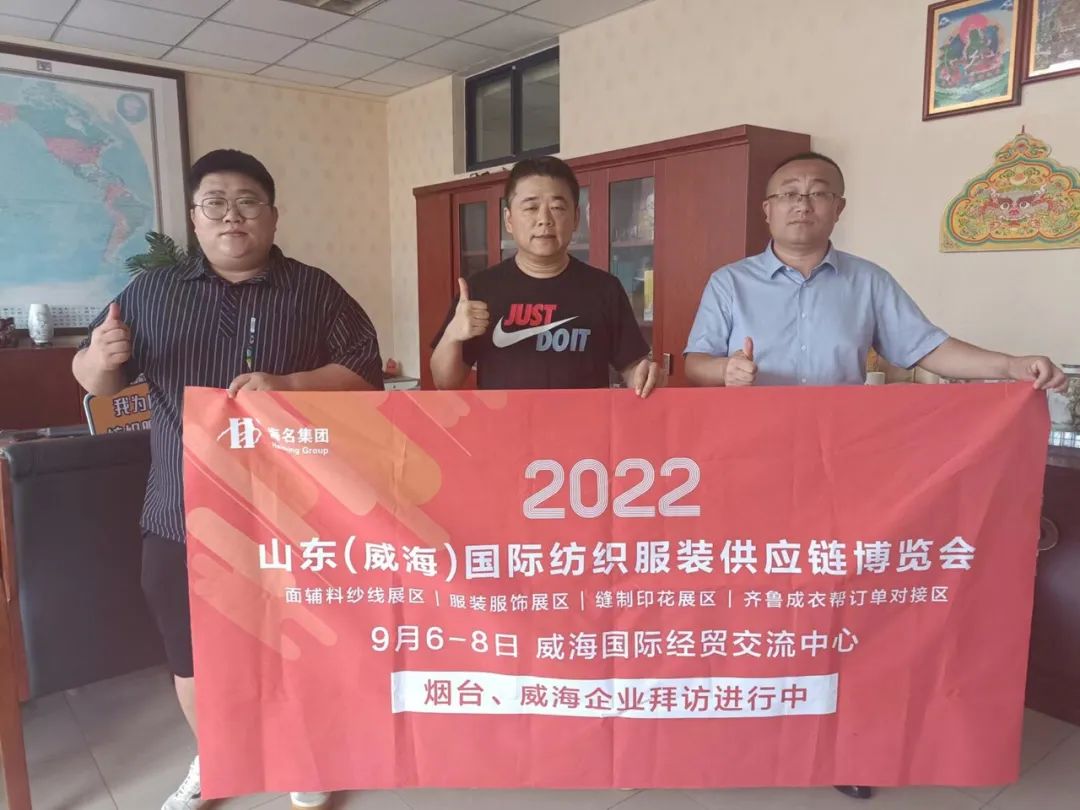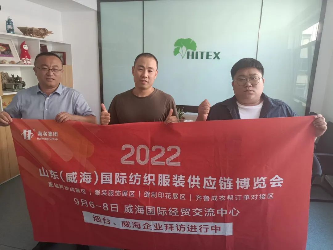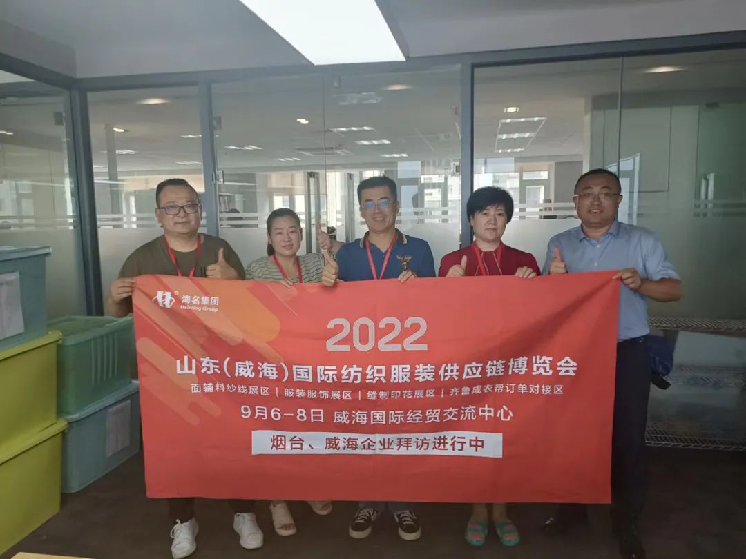 七月流火,海名會展—威海紡織服裝展的伙伴們,走進(jìn)威海、煙臺地區(qū),拜訪行業(yè)協(xié)會及服裝企業(yè),為即將于9月6日-8日在威海舉辦的2022山東(威海)國際紡織服裝供應(yīng)鏈博覽會進(jìn)行了推介。