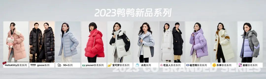 在貨品金字塔頂端的是由IP聯(lián)名款、設(shè)計(jì)師聯(lián)名款、高奢系列等組成的主題定制類商品。如主打鵝絨的YAYA GOOSE高端鵝絨系列。