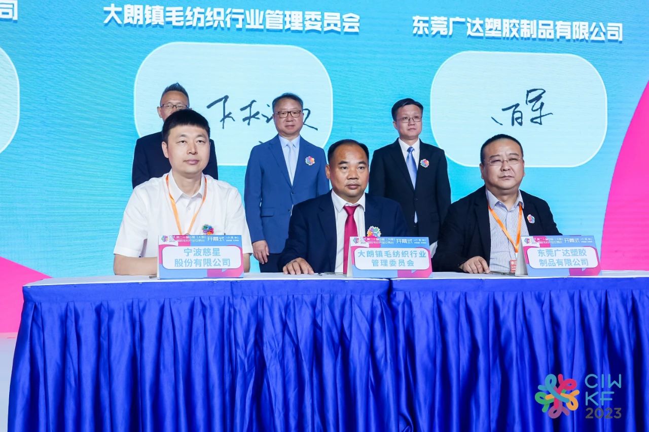 大朗鎮(zhèn)以“織交會”為媒,引導傳統(tǒng)毛織產(chǎn)業(yè)向新型工業(yè)化邁進,不斷提升產(chǎn)業(yè)競爭力和影響力,為大朗經(jīng)濟社會發(fā)展注入新的活力。東莞廣達塑膠制品有限公司、大朗鎮(zhèn)毛紡織行業(yè)管理委員會、寧波慈星股份有限公司三方簽署《智慧毛織企業(yè)投資合作框架協(xié)議》。
