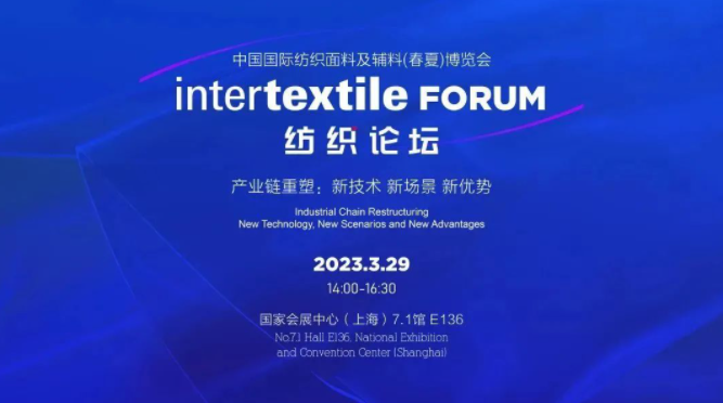 3月29日下午,由中國國際貿(mào)易促進委員會紡織行業(yè)分會、中國紡織信息中心、法蘭克福展覽(香港)有限公司主辦,北京盛世嘉年國際文化發(fā)展有限公司策劃承辦的2023 intertextile FORUM 紡織論壇在國家會展中心(上海)7.1-E136舉辦。本場論壇以“產(chǎn)業(yè)鏈重塑:新技術(shù) 新場景 新優(yōu)勢”為主題,助力產(chǎn)業(yè)創(chuàng)造國際競爭新優(yōu)勢,實現(xiàn)高質(zhì)量發(fā)展。