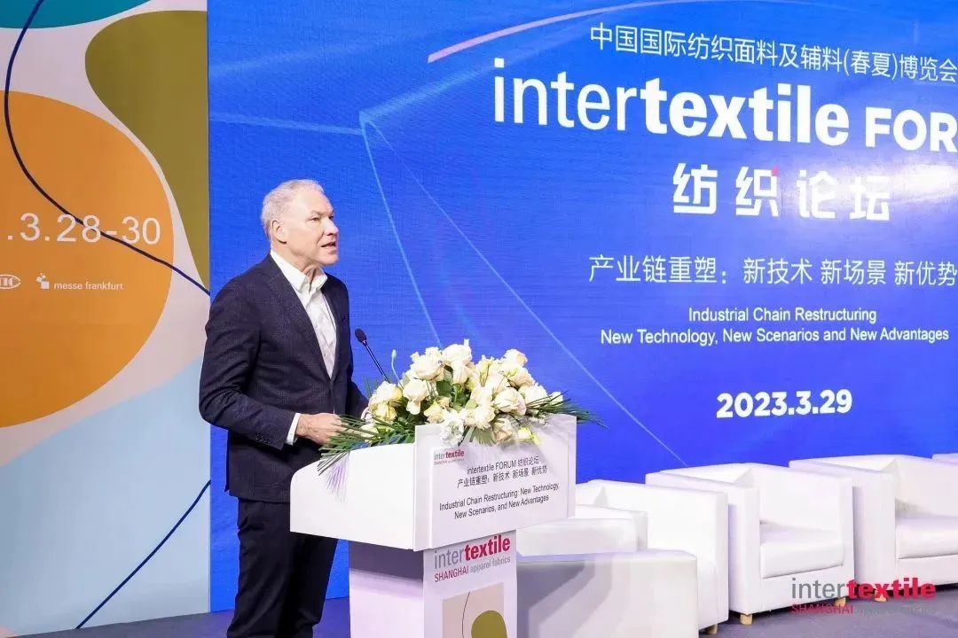 法蘭克福展覽有限公司紡織品及紡織技術(shù)展副總裁 Olaf Schmidt在開場致辭中表示,本次紡織五展聯(lián)動,上下游參與者齊聚一堂,互通有無,分享能夠推動行業(yè)發(fā)展的創(chuàng)新想法。在這方面,intertextile FORUM紡織論壇可謂最具代表性。面對目前復(fù)雜多變的商業(yè)環(huán)境,整個紡織行業(yè)不得不去適應(yīng)不可預(yù)見的變化。在這樣的背景下,紡織行業(yè)必須抓住機遇,重塑價值鏈,打造全球和區(qū)域新優(yōu)勢。