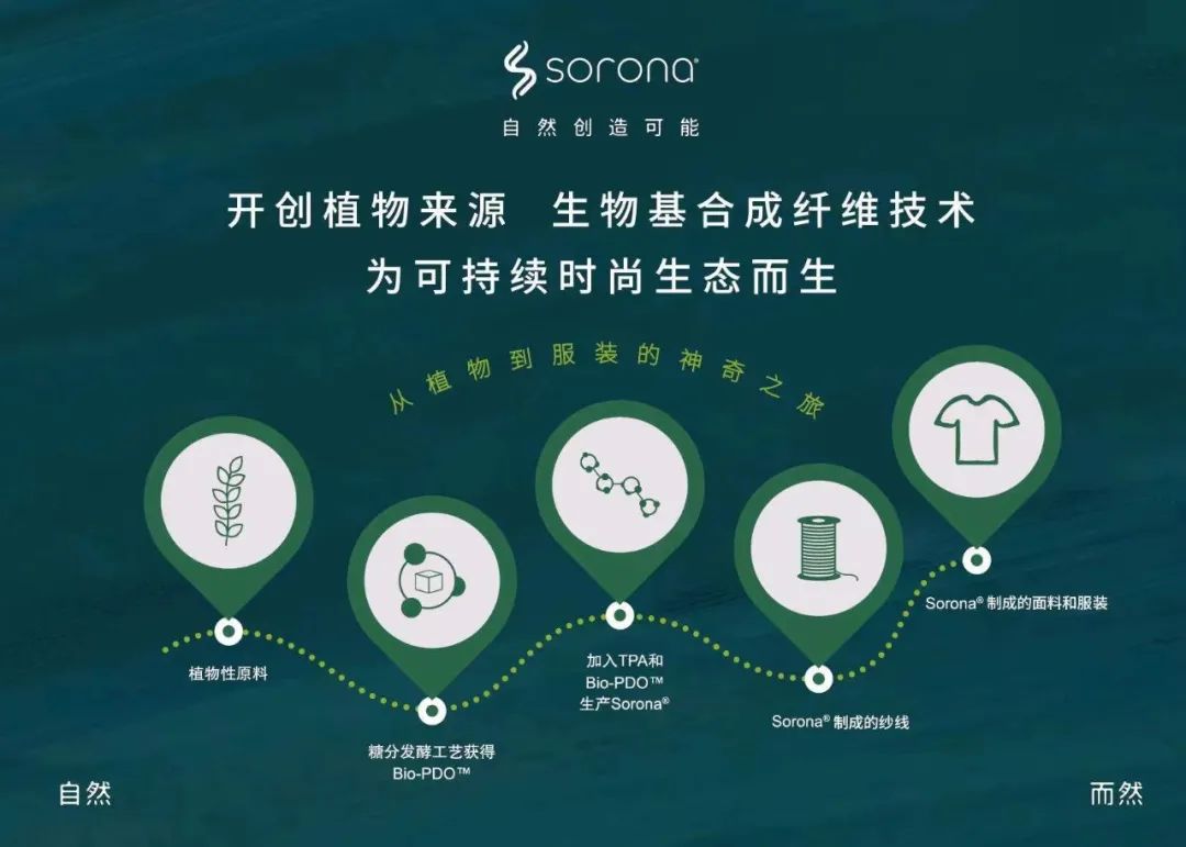 SORONA是一項(xiàng)突破性的新型生物基聚合物解決方案,其核心原料來自每年可重復(fù)生長(zhǎng)的植物。SORONA不僅具有符合國(guó)際潮流的可持續(xù)發(fā)展和環(huán)保主題,而且可以為纖維帶來多種功能的優(yōu)良特性。用SORONA原料制成的纖維的“多功能性”為面料和服裝設(shè)計(jì)師提供了更大范圍的設(shè)計(jì)自由!
