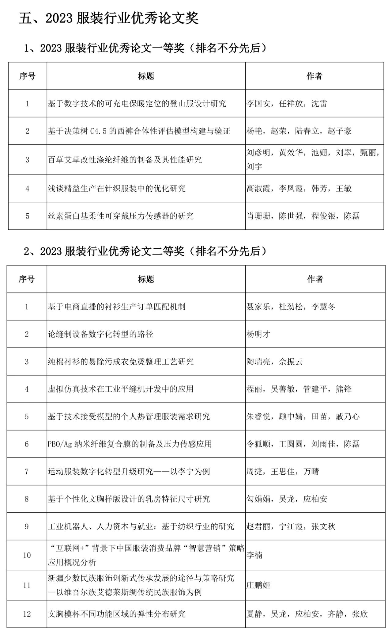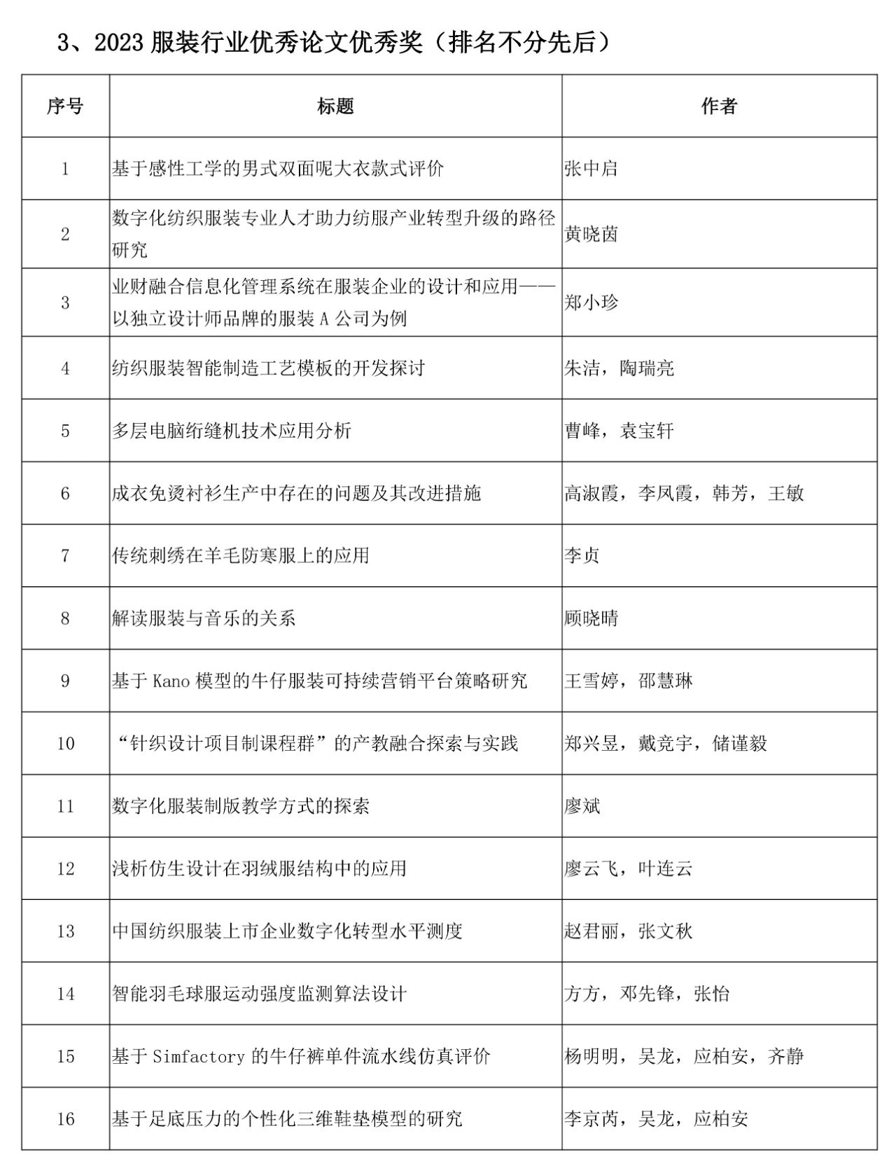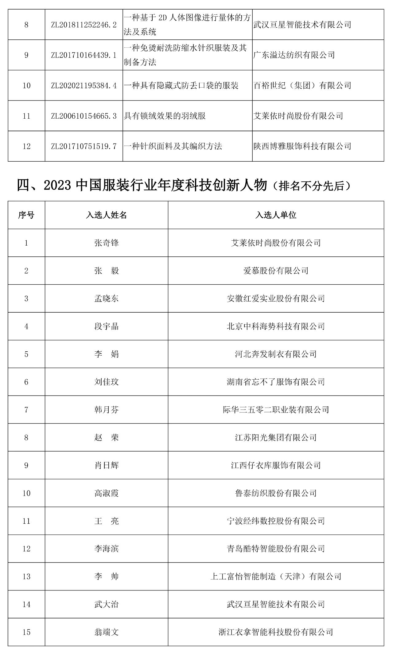 相關(guān)獎項征集工作收到全行業(yè)的積極響應(yīng)。根據(jù)會議獎項評審辦法的規(guī)定,由會議評審專家組評審,經(jīng)評審委員會審核確認(rèn)并公示,確定產(chǎn)生“2023年中國服裝行業(yè)科技進(jìn)步獎”29項、“2023年中國服裝行業(yè)科技進(jìn)步貢獻(xiàn)獎”33項、“2023年中國服裝專利獎”20項“2023 “2023服裝行業(yè)優(yōu)秀論文獎”33篇和中國服裝行業(yè)年度科技創(chuàng)新人物”15名。