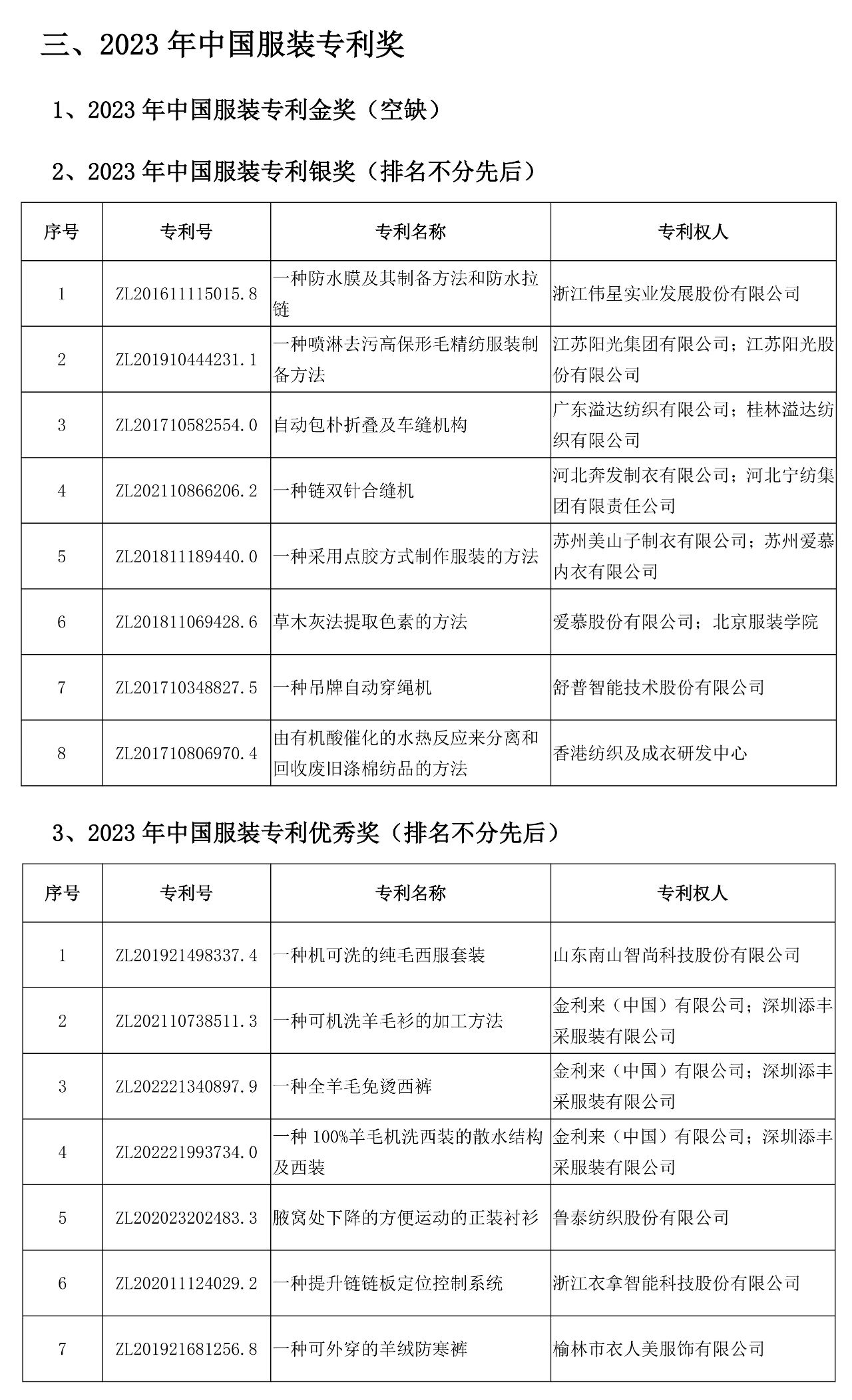 7月24日,為期兩天的2023中國服裝科技大會在浙江杭州開幕,為系統(tǒng)總結(jié)和表彰行業(yè)企業(yè)科技創(chuàng)新實踐經(jīng)驗,進(jìn)一步優(yōu)化行業(yè)科技創(chuàng)新生態(tài),激發(fā)行業(yè)科技工作者的積極性與創(chuàng)造力,加強科技創(chuàng)新對行業(yè)轉(zhuǎn)型升級發(fā)展的支撐作用,推動行業(yè)高質(zhì)量發(fā)展。大會對“2022年中國服裝行業(yè)專利獎”獲得者進(jìn)行了表彰。