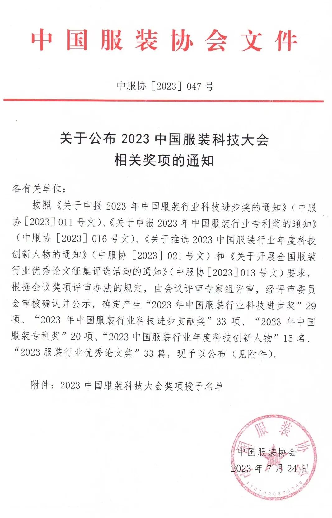作為2023中國服裝科技大會的配套活動,中國服裝協(xié)會3月份面向全行業(yè)發(fā)文,正式啟動行業(yè)科技進(jìn)步獎、專利獎、創(chuàng)新人物、優(yōu)秀論文獎的申報工作。
