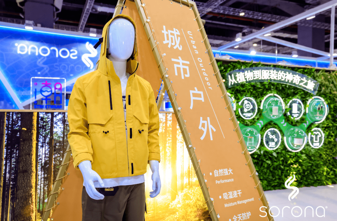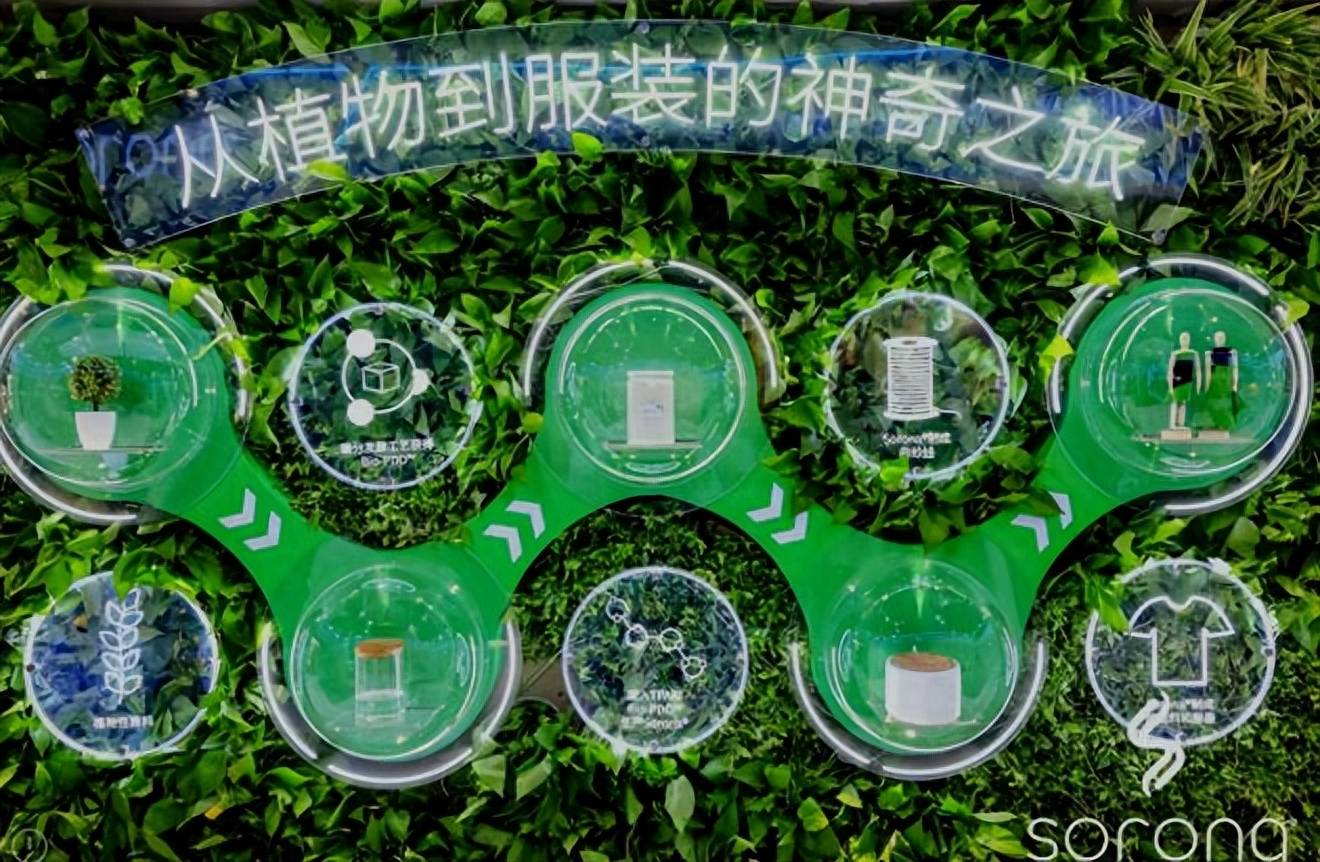 來到SORONA®展位,C位的植物墻記錄了SORONA®從誕生到服裝的生命周期歷程。SORONA®生物基材料利用可重復(fù)生長的植物性資源,憑借自然界所蘊(yùn)藏的強(qiáng)大力量,有效降低了生產(chǎn)過程中對石油資源的消耗與碳排放。作為植物來源生物基合成纖維技術(shù)的先驅(qū),SORONA®打破傳統(tǒng)纖維產(chǎn)業(yè)重度依賴石油和石化產(chǎn)品的局面,從此不再桎梏于傳統(tǒng)時尚工業(yè)的高耗能。