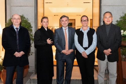 圖說:(從左至右)法國駐上??傤I(lǐng)事館經(jīng)濟(jì)參贊穆西石先生,智奧會展大中華區(qū)總裁Inès Ginon女士,法國駐上海總領(lǐng)事M. Joan Valadou 王度先生、Première Vision董事會主席Florence Rousson女士、之禾卡紛集團(tuán)創(chuàng)始人葉壽增先生