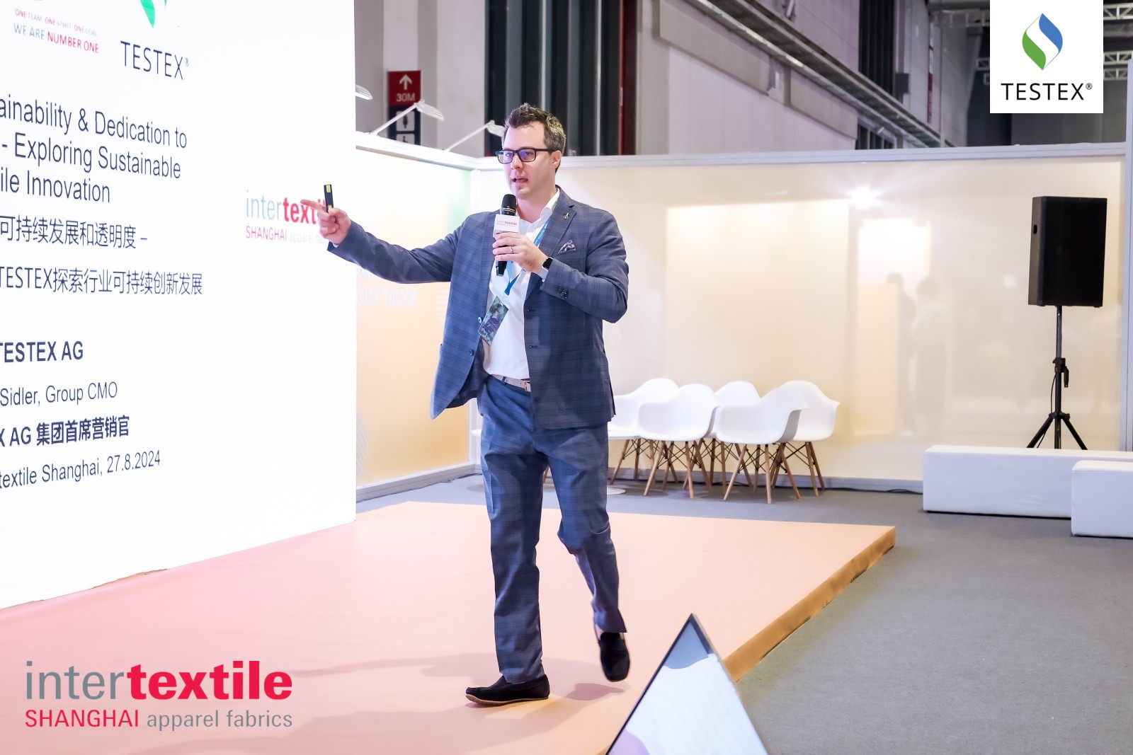 展會(huì)同期,TESTEX特思達(dá)集團(tuán)首席營(yíng)銷官M(fèi)arc Sidler先生發(fā)表了題為“推動(dòng)行業(yè)可持續(xù)發(fā)展和透明度——與OEKO-TEX®和TESTEX探索行業(yè)可持續(xù)創(chuàng)新發(fā)展”的主題演講。Marc在演講中強(qiáng)調(diào)了在紡織行業(yè)中可持續(xù)發(fā)展與透明度的重要性,介紹了OEKO-TEX®標(biāo)準(zhǔn)更新情況,TESTEX與ZDHC的合作,以及TESTEX即將推出的兩個(gè)新業(yè)務(wù)—— TESTEX MICROPLASTIC 和 TESTEX CIRCULARITY。