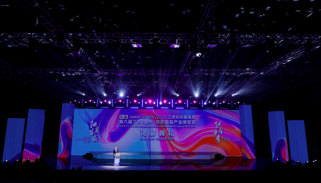 11月26日,為期3天的2025江西紡織服裝周暨第六屆江西(贛州)紡織服裝產(chǎn)業(yè)博覽會圓滿落下帷幕。省工信廳副廳長江紹龍,贛州市副市長鄒治宇出席閉幕式并致辭。省工信廳紡織工業(yè)處處長潛九慶,江西服裝學(xué)院副院長賈麗霞,市市場監(jiān)管局局長黃蕙,縣委副書記、縣長李松柏,縣領(lǐng)導(dǎo)羅高波、賴曉強(qiáng)等出席活動??h委常委、副縣長楊海峰致答謝詞。