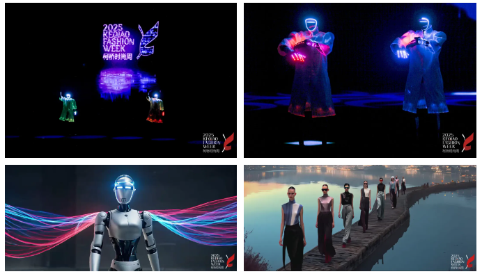 當火遍全球的人形機器人身著華服熱舞T臺,2025柯橋時尚周(春季)在未來科技與流行時尚的交相輝映中炫麗啟幕,在“云織東方”的華彩首秀中開啟了傳統(tǒng)與未來的對話。