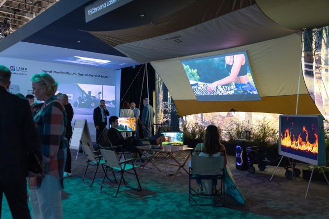 在IFA 2025上,Vidda四款三色激光投影組成強勢產(chǎn)品矩陣,其中備受矚目的焦點,正是Vidda的旗艦C系列。通過探路者特別搭建的露營場景,吸引了大量觀眾駐足落座體驗。在真實場景的襯托下,三色激光技術(shù)的優(yōu)勢盡顯,即使在展臺人流密集、光線充足的復雜環(huán)境中,這些投影仍能投射出清晰銳利的畫面,贏得現(xiàn)場一致好評。