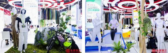從纖維端切入功能,從面料端轉(zhuǎn)換成衣,整個(gè)展位如同一場(chǎng)“可觸摸的潮流發(fā)布會(huì)”,使觀眾通過(guò)場(chǎng)景陳設(shè)直觀感受每一種新材料在成衣中的應(yīng)用效果。
