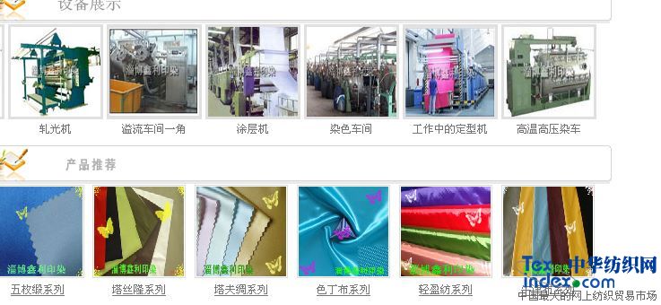 中外合資淄博鑫利綢緞印染有限公司 您好!在這辭舊迎新之際,淄博鑫利綢緞印染有限公司全體工作人員祝您新春愉快,牛年吉祥! 主要產(chǎn)品:210T輕盈紡、佳麗緞、色丁、貢緞、錦滌變色龍、96*72T/C、88*64、110*76、等等各種化纖面料及各種滌棉布。并根據(jù)來樣打ABC小樣。以優(yōu)惠的價格服務(wù)客戶。 2009年初,淄博鑫利綢緞印染有限公司進行了一系列業(yè)務(wù)改革,本著客戶滿意原則,為客戶服務(wù)的宗旨。2009年繼續(xù)設(shè)備更新改造,在原有的設(shè)備基礎(chǔ)上新上面料染色。更好地為客戶服務(wù)。 2009年,我們將繼續(xù)秉承“淄博鑫利,常聯(lián)系更好服務(wù)”的理念,來回饋您一直以來對淄博鑫利綢緞印染有限公司的支持和厚愛。 最后,送上一張我的名片,祝您和您的家人身體健康,萬事如意! 2009,常聯(lián)系! 聯(lián)系人: 韓克鴻 Email: ZIBOXINLI@163.COM 聯(lián)系電話: 1 3 5 6 1 6 6 3 4 9 7 0533-6880597 地址: 淄博市周村區(qū)萌水鎮(zhèn)官三工業(yè)園 中外合資淄博鑫利綢緞印染有限公司 ZIBO XINLI SATIN PRINTING & DYEING CO.LTD 地址:山東省淄博市周村區(qū)萌水官三工業(yè)園 傳真:0533-6880537 TEL:13561663497 Email: ZIBOXINLI@163.COM 尊敬的客戶你們好: 淄博鑫利綢緞印染有限公司是山東省服裝進出口公司 香港嘉利徳斯(遠東)有限公司及香港毅隆資源有限公司等企業(yè)合資興辦的合資企業(yè),總投資132.95萬美元,注冊資金為 南107.9萬美元?,F(xiàn)在擁有固定資產(chǎn)6000萬元。 企業(yè)地處山東省淄博市周村區(qū),靠膠濟鐵路周村站和309國道,北靠濟青高速公路,交通發(fā)達,十分便利。 公司現(xiàn)有員工360人,其中有大專以上學(xué)歷專業(yè)技術(shù)人員78人,有中級以上職稱技術(shù)人員46人。 企業(yè)采用現(xiàn)代化管理方式,董事長董乃長獲市級企業(yè)家榮譽稱號。近年來,我公司致力于科技開發(fā) ,加大設(shè)備以及技術(shù)改造投入,開拓進取,各種印染產(chǎn)品年產(chǎn)量已達到5000萬米。公司的主要產(chǎn)品包括印染染色,,滌綸綢、大小斜紋、五枚緞、輕盈紡、春亞紡、變色龍、桃皮絨各種化纖面料、化纖里料及各種滌棉布,同時產(chǎn)品后整理具有涂層、軋光、壓花、印花等較先進的設(shè)備及生產(chǎn)能力,是山東服裝進出口公司的定點染色工廠,產(chǎn)品遠銷北京、上海、江蘇南京、廣東省等國內(nèi)各大中城市的大型外貿(mào)服裝進出口公司及服裝生產(chǎn)廠家,并有大量產(chǎn)品出口美國、西歐、俄羅斯、韓國、南非及香港20多個國家和地區(qū),受到中外客商的光泛贊譽。 一握淄博鑫利手,永遠是朋友!我公司愿以真誠的合作,真誠的服務(wù),一流的質(zhì)量共同拓展宏圖大業(yè),使淄博鑫利明天更美好?。? 淄博鑫利綢緞印染有限公司 韓克鴻 聯(lián)系電話:13561663497 0533-6880597 傳真:0533-6880537 Email: ziboxinli@163.com