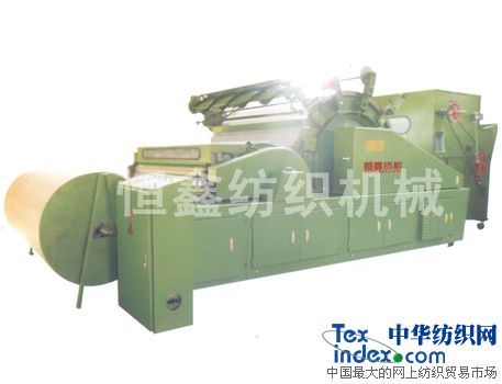 本機(jī)的前道工序是軋花機(jī),本機(jī)用于加工棉纖維和化學(xué)纖維。將前道工序送來(lái)的棉、化纖等進(jìn)行開(kāi)松分梳除雜。使所有呈卷曲、塊狀的棉團(tuán)成為基本伸直的單纖維狀態(tài),并在此過(guò)程中,除掉清花工序遺留下來(lái)的破籽、雜質(zhì)的短絨,然后加工成被套。