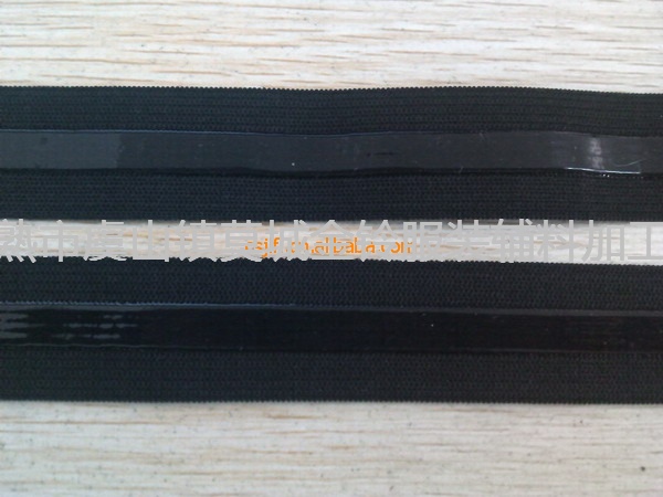 硅膠防滑橡筋帶,硅膠滴膠涂層有透明直線形、波浪形等,主要起防滑作用,美觀、立體手感更佳,同時可有效增強松緊帶的彈性及拉伸性。滴膠牢固,耐洗耐磨,符合環(huán)保標準。
