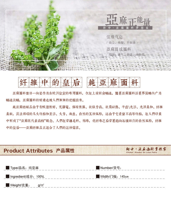 所屬分類 面料,麻面料