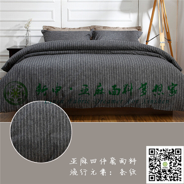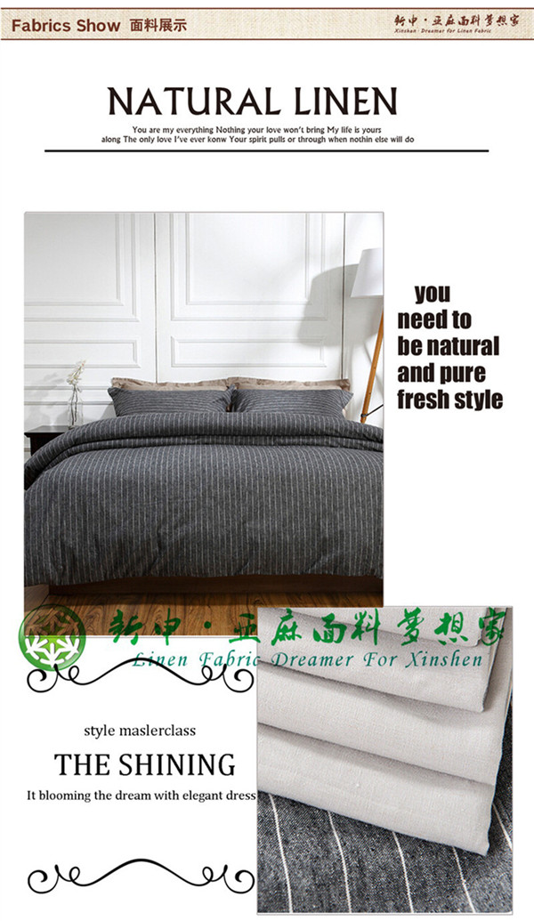 高檔純天然亞麻條紋款床上用品布料