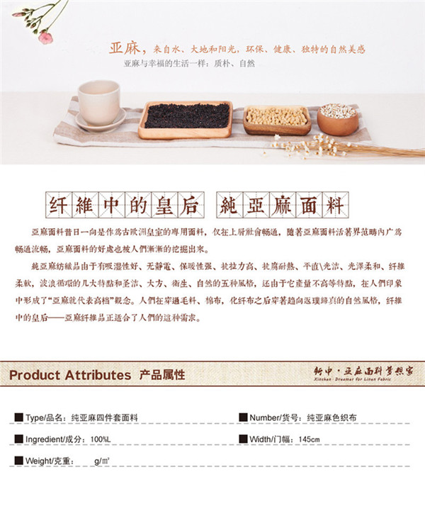 關鍵字:亞麻面料,自然舒適,天然健康,簡約大氣,防塵抑菌