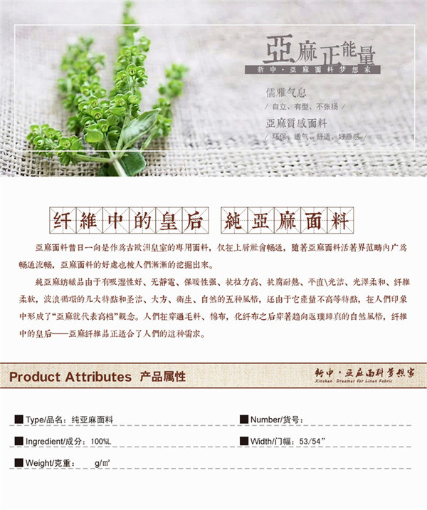 所屬分類 面料,麻面料