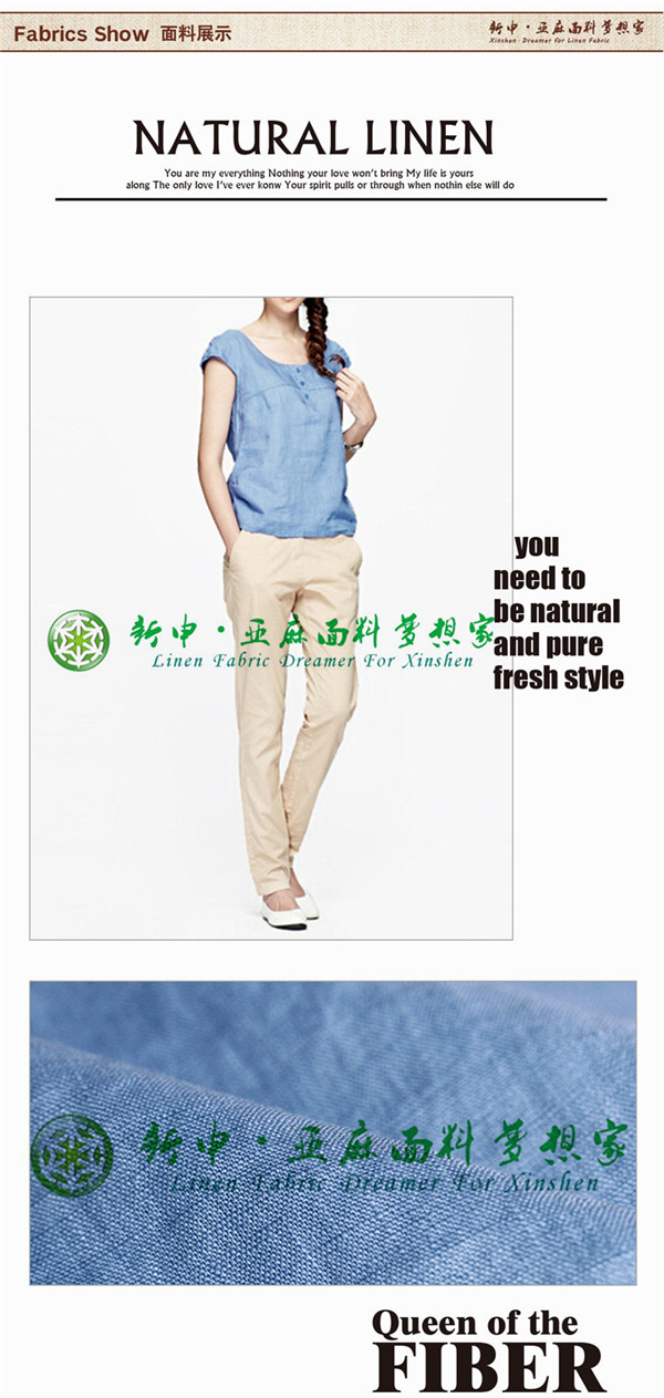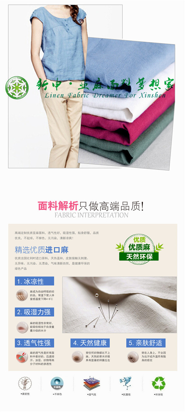優(yōu)質(zhì)純天然亞麻夏季女裝短袖T恤上衣布料