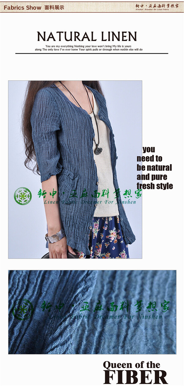 100%高檔優(yōu)質自然亞麻女裝壓皺布藝面料