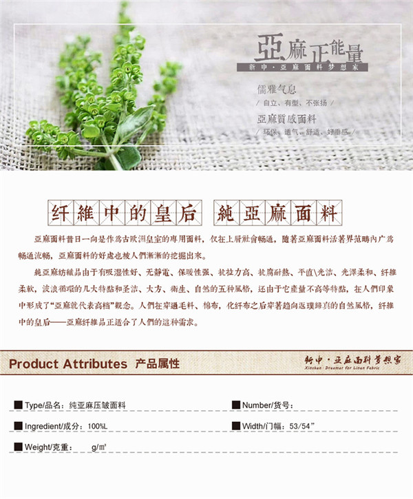 關鍵字:亞麻面料,自然親膚,時尚潮流,質感舒適,款式新穎