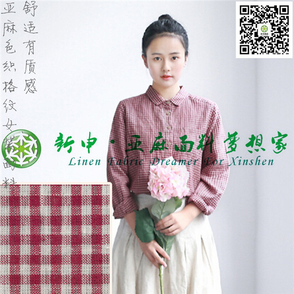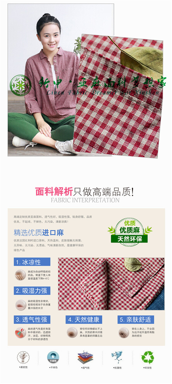 亞麻細格紋款式女式休閑襯衫布藝面料