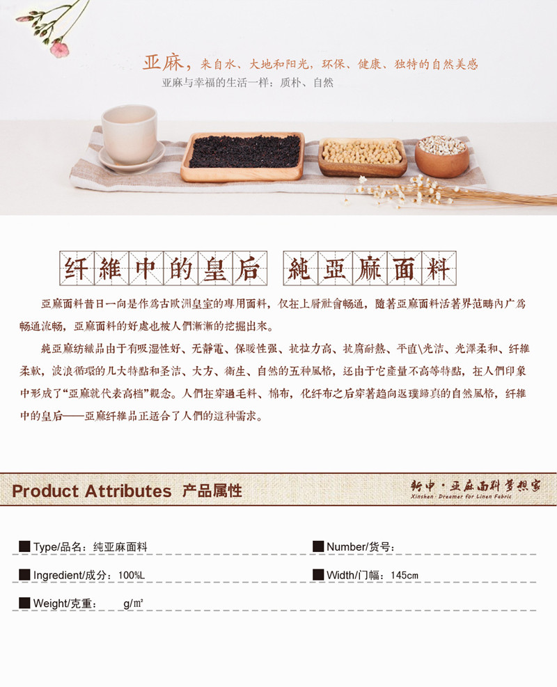 所屬分類 面料,麻面料