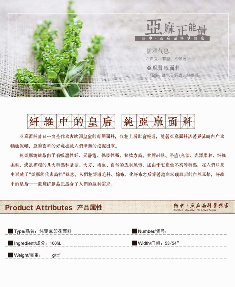 所屬分類 面料,麻面料