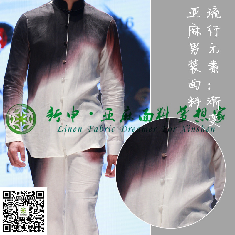 時(shí)尚流行新款漸變色亞麻男士新中裝面料