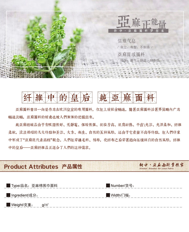 所屬分類 面料,麻面料