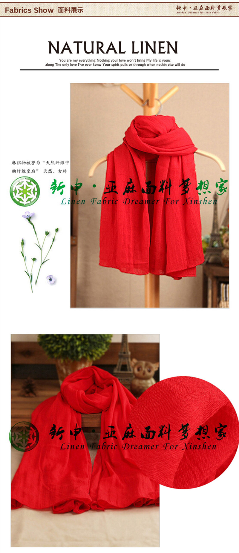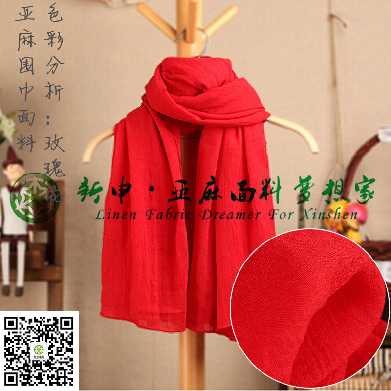 韓版森系風格大紅色亞麻棉圍巾布藝面料