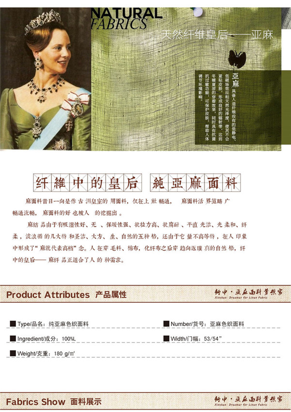 所屬分類 面料,麻面料