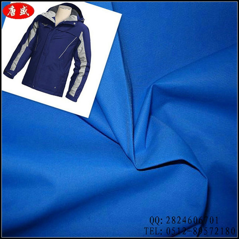 消光滌綸塔絲?。?/span>該面料經(jīng)線采用的是全消光FDY75D,緯線采用滌綸ATY160D為原料,選用細(xì)平紋組織在噴水織機(jī)上織造,先后經(jīng)過定型、染色、防水劑處理等多步驟深加工而成,具有手感柔軟、防水性能好、服用性能強(qiáng)等優(yōu)勢(shì)。面料適宜制作成茄克衫、旅游裝等休閑服飾。這兩款滌綸交織的塔絲隆面料,由于其原料的搭配優(yōu)勢(shì),使得布面質(zhì)地輕柔。