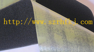 產品特性:可利用高周波熔接,粘性佳,不易脫落。適用于不便車縫方式的應用,普通車縫方式會因有針車孔而造成滲水(如雨衣),或是漏氣(如游泳圈),而高週波粘扣帶采用PC膠背膠,使用高週波(高頻熱合)的機臺將粘扣帶壓合在PVC,POLY材質的面料上,很好的解決了這個問題。