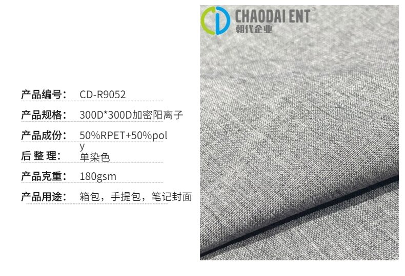 關(guān)鍵字:再生滌綸,再生牛津布面料,手提包面料,筆記本封面面料,再生陽離子牛津布面料