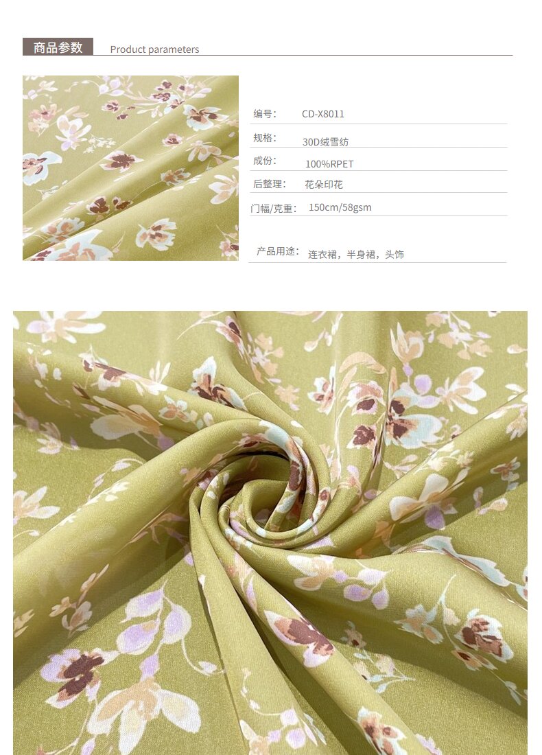 關(guān)鍵字:再生面料,絨雪紡面料,連衣裙面料,頭飾面料
