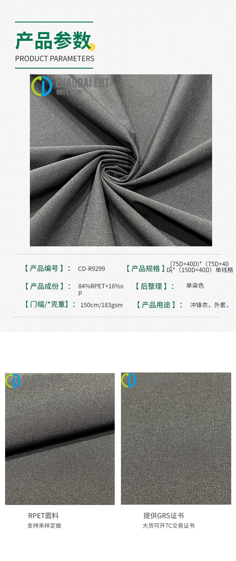 關(guān)鍵字:再生春亞紡面料,外套面料,沖鋒衣面料