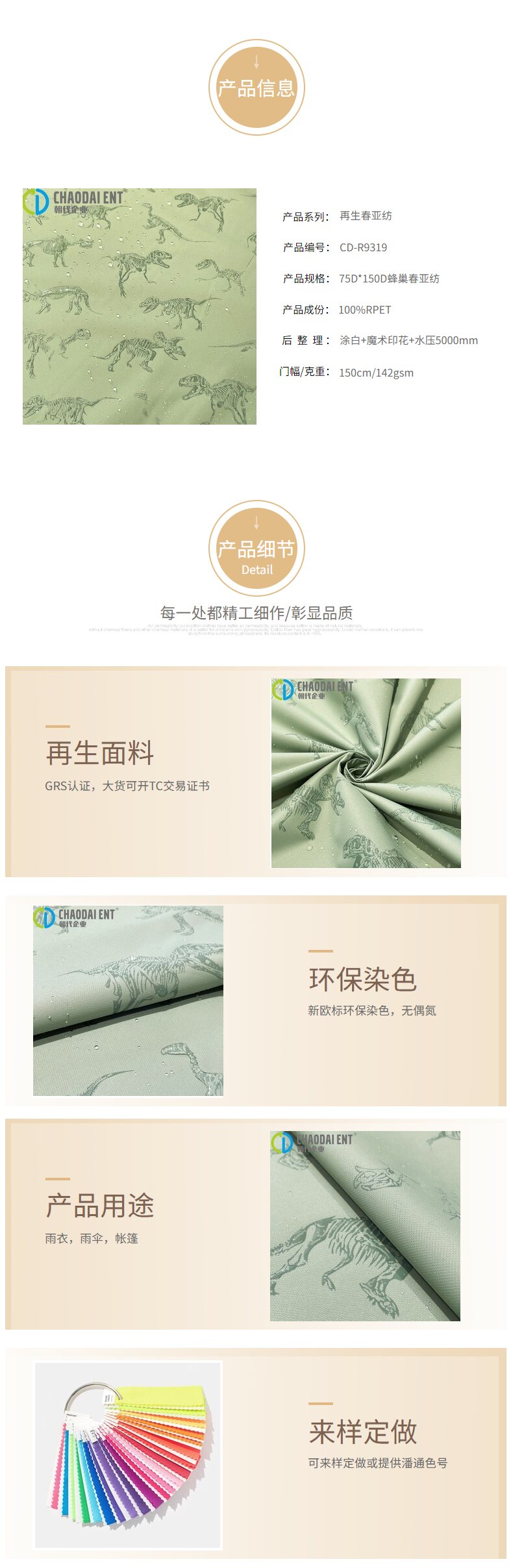 關(guān)鍵字:再生面料,春亞紡面料,雨衣面料,帳篷面料