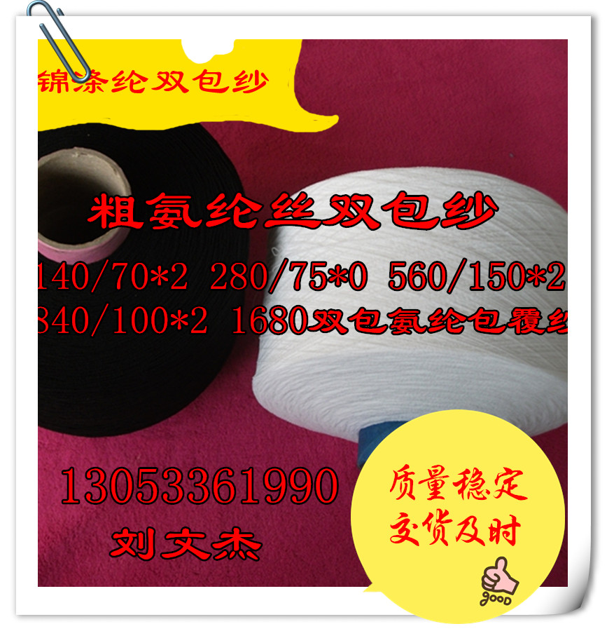 規(guī)格 2030、2040、2050、20/70、3040、30/70、40/70、7070、20/75、40/75、40/100、40/120、40/150、70/300、140/70*2 280/75*2 560 /150*2 840/100*2雙包氨綸包覆紗 100#/70*2 32# 42# 52# 63# 75# 90# 乳膠絲錦綸 滌綸雙包 拉架 包根 彈力紗線