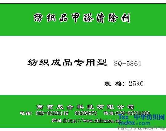 在面料的生產(chǎn)中,為了達到防皺、防縮、長效阻燃、保持印花染色的持久性、改善手感等,需在阻劑中添加甲醛。服裝在樹脂的整理過程中也涉及到甲醛的使用。這樣勢必造成面料及服裝中甲醛的殘留。本產(chǎn)品可迅速、徹底地消除各種紡織品中殘留的甲醛,對紡織品的外觀及理化性能無影響。提高紡織品的環(huán)保等級。本公司生產(chǎn)的紡織品用甲醛一網(wǎng)凈—5861型,可用于各種紡織品甲醛的清除,使紡織品甲醛含量降至10ppm甚至更低,達到國際國內(nèi)規(guī)定的標準。