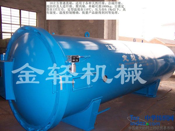我公司生產(chǎn)的真空給濕蒸箱適用于以真絲,棉紗,羊絨等天然纖維為原料的紡織行業(yè)和單位,其主要用途是將具備織造條件的絲線在合并.加捻后進行給濕定型,即在多次真空和一定溫度范圍下增加濕度.降低紗線縮率,改善成品手感,光澤度,提高紗線張力.強度,同時消除靜電及各部分的不平衡應(yīng)力。 采用“蒸箱”給濕定型顯得更為重要。該“蒸箱”的使用特點是:適用范圍廣泛,既能濕熱定型(將飽和蒸汽直接通入筒體內(nèi))又能干熱定型(將飽和蒸汽直接通入夾套內(nèi),由筒體內(nèi)壁散熱)。大門開關(guān)輕便靈活,物件裝卸迅速.方便。大門同筒體法蘭的密封良好。定型后產(chǎn)品的物理機械性能,如:強力.伸長度等都不受影響,同時使針織效率提高10%;整經(jīng)/織造效率提高15%;又使染色布面均勻,還可以降低失重率。
