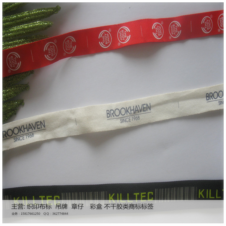 2、印刷工藝類有:柔印布標(biāo)、絲印布標(biāo)、專色布標(biāo)、四色網(wǎng)點(diǎn)印嘜布標(biāo)、熱轉(zhuǎn)印、膠印商標(biāo)等